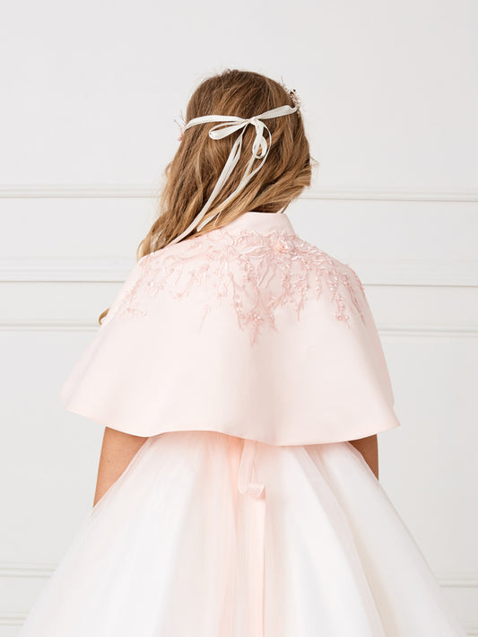 Party Girl Lace Applique Satin Cape Dress by TIPTOP KIDS - AS7912