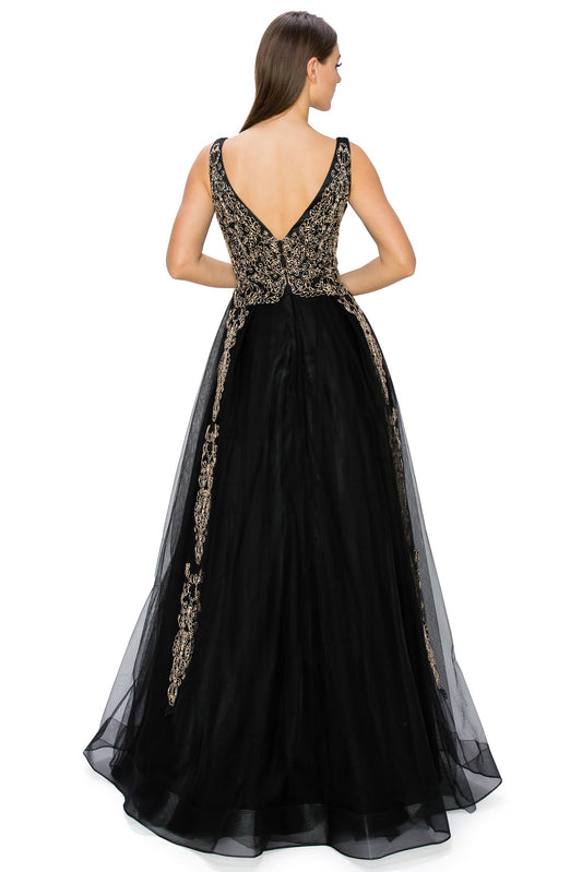 Black Glitter Floral Lace Tulle Gown by Cinderella Couture USA AS8029J-BLK - Special Occasion/Curves