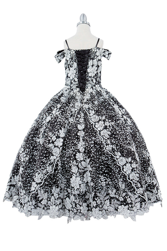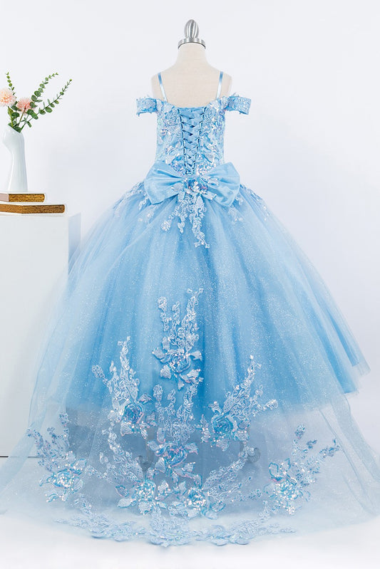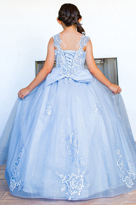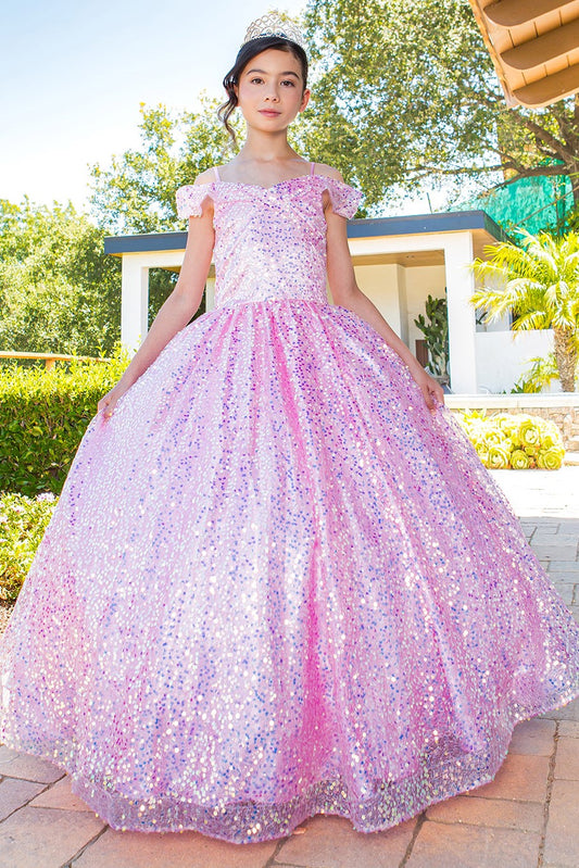 Embellished Glitter Cut-Away Shoulder Kids Dress by Elizabeth K - GK110