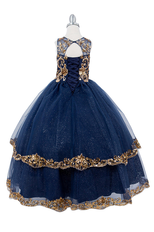 Sequin Embroidery High Neck Kids Dress by Elizabeth K - GK108