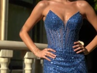 Shop our Ladivine CD0214. Elevate your special occasion style with this stunning strapless sequin mermaid dress! Crafted from quality fabrics, this sleek silhouette is perfect for any prom, birthday bash, or other romantic event. Featuring a pointed bust cups with a tasteful strapless v-neckline to flatter your figure and an eye-catching sequin embellished bodice for a touch of sparkle. The tulle flared mermaid skirt adds an extra layer of drama, while the corset boned bodice ensures you look sleek and sexy all night long. For a look that will have everyone in awe, show off your curves in this elegant strapless sequin mermaid dress.